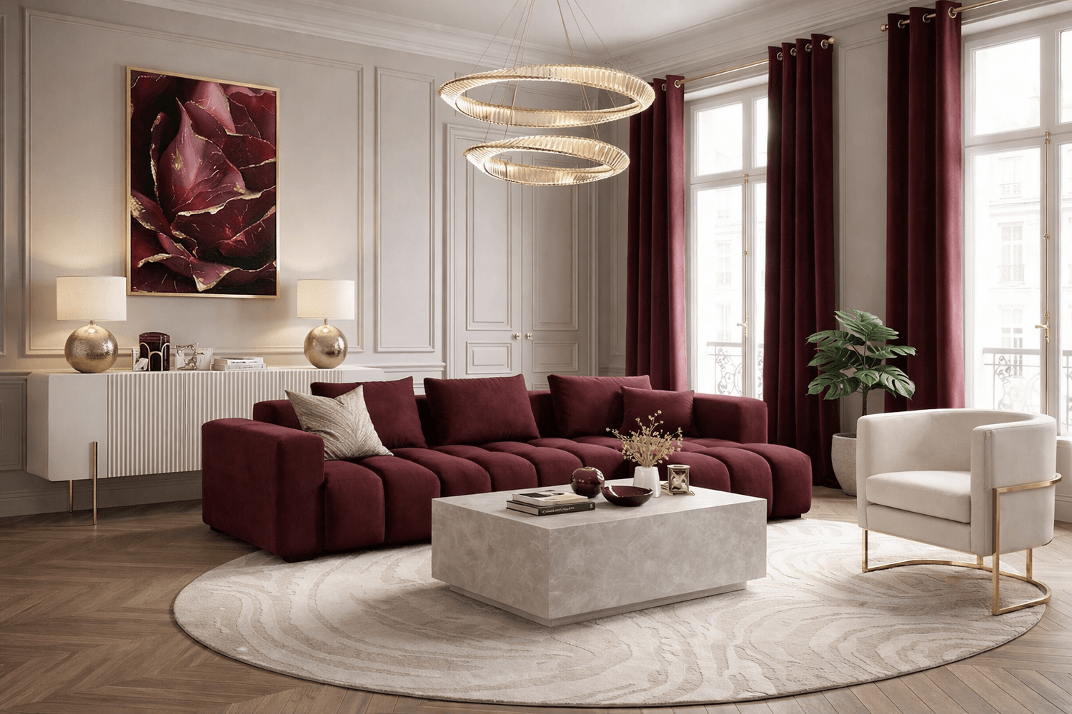 Le rouge bordeaux capte le regard